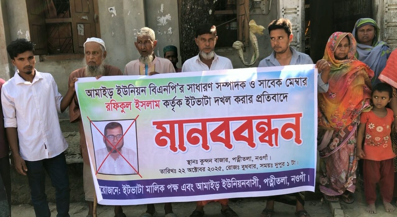 ইটভাটা দখলের প্রতিবাদে নওগাঁর পত্নীতলায় মানববন্ধন