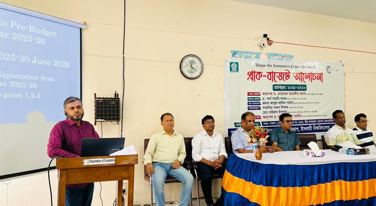 কুষ্টিয়ার ইসলামী বিশ্ববিদ্যালয়ে (ইবি) দেশের সাম্প্রতিক আর্থিক প্রেক্ষাপট এবং আসন্ন বাজেটে নিয়ে উন্মুক্ত আলোচনার উদ্দেশ্যে অর্থনীতি বিভাগ ও অর্থনীতি ক্লাবের যৌথ আয়োজনে ২০২৫-২৬ অর্থবছরের জাতীয় বাজেট বিষয়ক প্রাক বাজেট শীর্ষক আলোচনা সভা অনুষ্ঠিত হয়েছে।