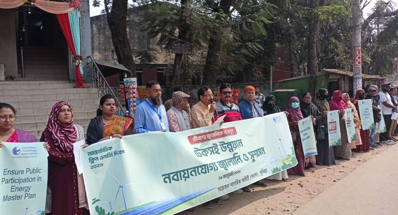 নবায়নযোগ্য জ্বালানি খাতের দ্রুত ও অধিকতর কার্যকর বিকাশের উপযোগী সুশাসন নিশ্চিতে অনুকূল পরিবেশ তৈরির লক্ষে সচেতন নাগরিক কমিটি (সনাক), কুমিল্লার আয়োজনে আন্তর্জাতিক ক্লিন এনার্জি দিবস ২০২৬ উপলক্ষে ২৬ জানুয়ারি সোমবার কুমিল্লা প্রেস ক্লাব প্রাঙ্গণে মানববন্ধন অনুষ্ঠিত হয়েছে। অনুষ্ঠানে সচেতন নাগরিক কমিটি (সনাক) সনাক, ইয়ুথ এনগেজমেন্ট এন্ড সাপোর্ট (ইয়েস), অ্যাকটিভ সিটিজেন্স
