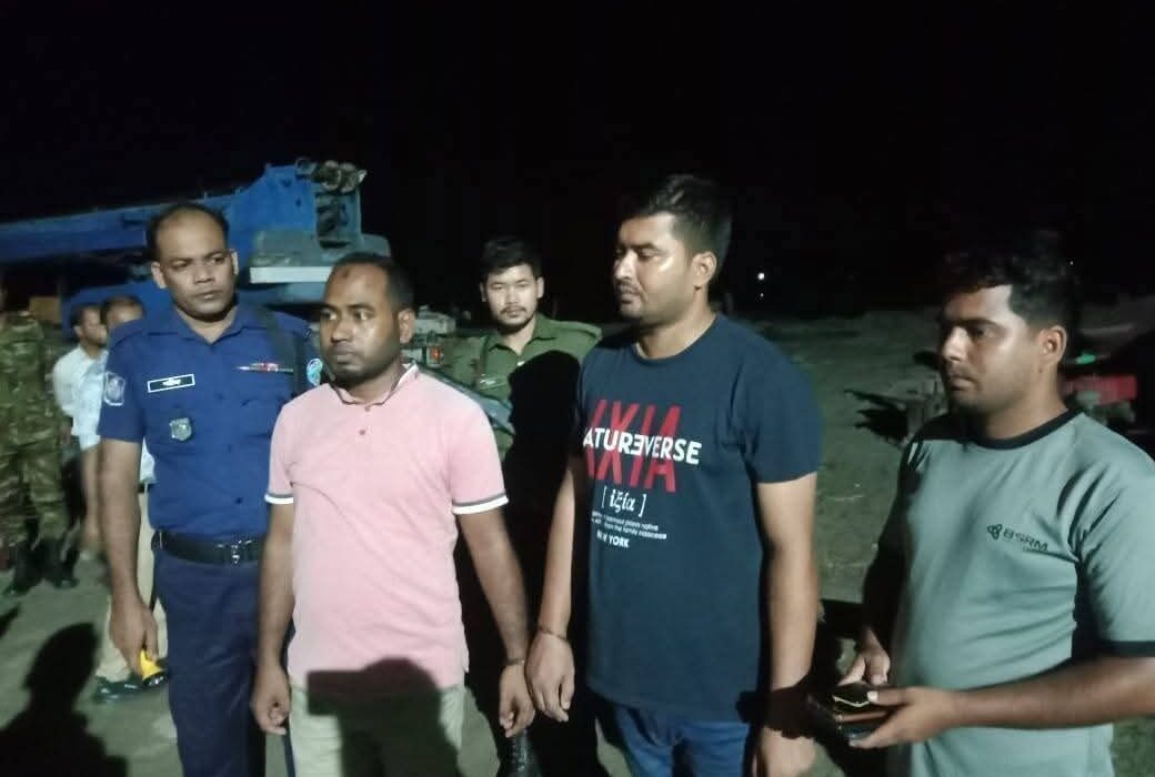 এসময় ডেপুটি প্রজেক্ট ম্যানেজার নুর নবী (৩৮) ও সাইট ইঞ্জিনিয়ার মোহাম্মদ রিয়াজুল (৩২)কে আটক করা হয়। বালু উত্তোলন কাজে ব্যবহৃত প্রায় ১.৫ কিলোমিটার পাইপ ধ্বংস করা হয় এবং ১ টি ইঞ্জিন জব্দ করা হয়।