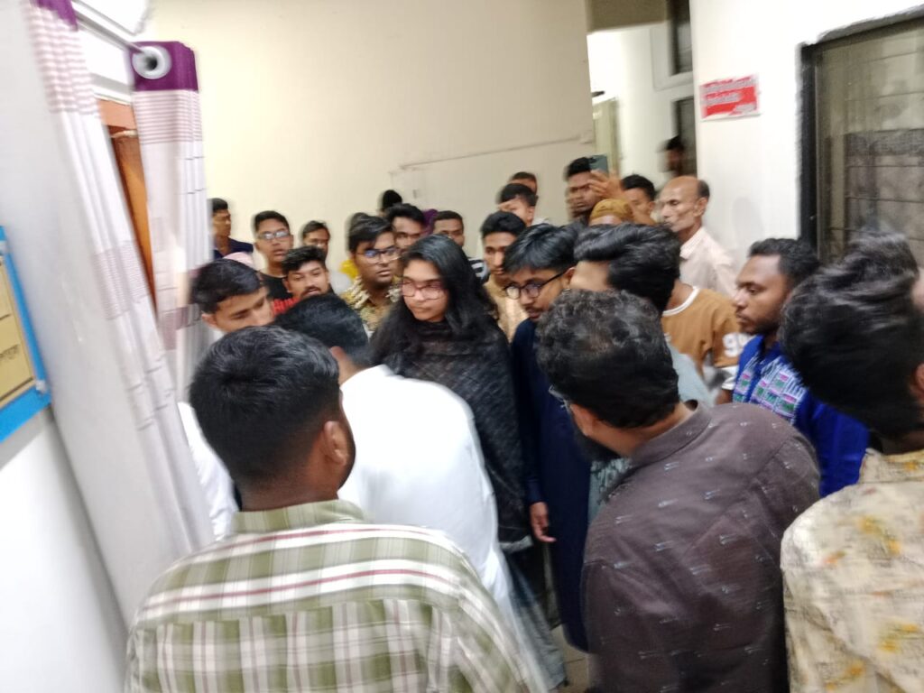 নাহিদ ইসলাম হাসপাতালের উপপরিচালক দিলরুবা ইয়াসমিনের কক্ষে গিয়ে ছাত্রীর শারীরিক অবস্থা সম্পর্কে বিস্তারিত জানতে চান। এ সময় তার সঙ্গে ছিলেন জাতীয় নাগরিক পার্টির মুখ্য সংগঠক হান্নান মাসুদ, জ্যেষ্ঠ যুগ্ম সদস্যসচিব ডা. তাসনিম জারা, যুগ্ম সদস্যসচিব মুজাহিদুল ইসলাম, গণতান্ত্রিক ছাত্র সংসদের কেন্দ্রীয় কমিটির সদস্যসচিব জাহিদ আহসানসহ আরও অনেকে।