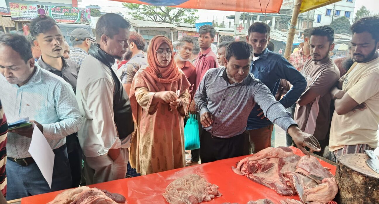 চিরিরবন্দরে অসুস্থ গরুর মাংস বিক্রির অভিযোগে ব্যবসায়ীকে জরিমানা।