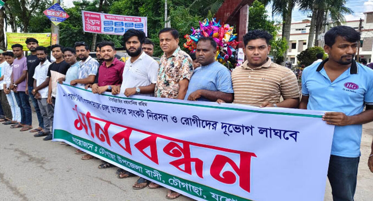 চৌগাছায় মানববন্ধন সরকারী হাসপাতালে ডাক্তার সংকট চিকিৎসা সেবা ব্যহত প্রতিবাদে