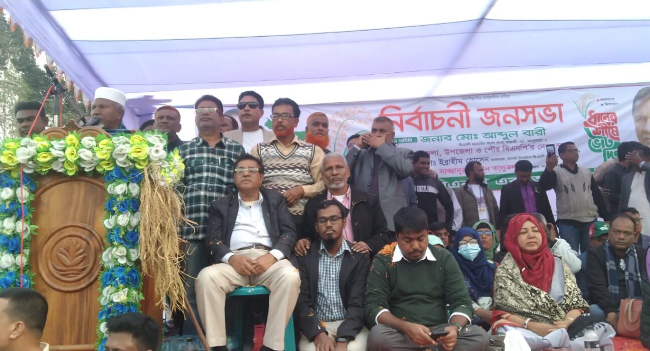 জয়পুরহাটের কালাইয়ে বিএনপি মনোনীত প্রার্থী আব্দুল বারীর নির্বাচনী জনসভা