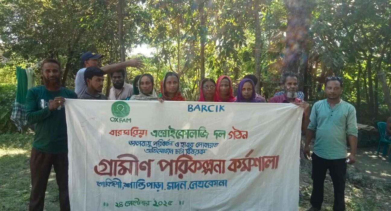 তারপরেও অনেক নারী পুরুষ আছেন যারা নিজ বাড়ির আঙ্গিনায় সারাবছরই সবজীচাষকরার উদ্যোগ গ্রহণ করেন। হাঁসমোরগ,গরু ছাগল পালন করেন। বাড়িরসবটুকু জায়গাকেই ব্যবহার করেন কৃষিকাজে। বিভিন্ন লোকায়ত পদ্ধতি অনুসরণ করে অভিযোজন করে সচল রাখেন কৃষি ও জীবন ব্যবস্থা। এসব বিষয়কে সামনে রেখেই বেসরকারী গবেষণা প্রতিষ্ঠান বারসিক দাতা সংস্থা অক্সফামের সহযোগিতায়“ জলবায়ু পরিবর্তন ও হাওর লোকায়ত অবিযোজন বিষয়ক” কর্মশালার আয়োজন করা হয়। কর্মশালায় গোবিন্দশ্রী ইনউনিয়নের বারঘরিয়া গ্রামের কৃষিপ্রতিবেশবিদ্যা দলের ১৫ জন কৃষক কৃষানি উপস্থিত ছিলেন। তাঁরা নিম্নলিখিত সমস্যার কথা তুলে ধরেন ও সমাধানে কি কি লোকায়ত পদ্ধতি ব্যবহার করেন তা বর্ননা করেন এবং নিজ নিজ বাড়িতে কৃষিপ্রতিবেশবিদ্যা চর্চার পরিকল্পনা গ্রহন করেন। যেসব সমস্যার তুলে ধরেন: আগাম বন্যা, ফসলরক্ষা বাঁধ ভেঙ্গে ফসলের ক্ষতি, স্থানীয় বীজ নেই, বর্ষাকালে সবজীর জন্য বাজার নির্ভরশীল ,চারণভূমি , ঘনকুয়াশায় ফসলের ক্ষতি, ঢেউয়ে বসতভীটায় ভাঙ্গন, ঠান্ডায় ফসলের ক্ষতি , ফসলের রোগবালাই বেশী , গরম ও তাপদাহে ফসলের ক্ষতি , হাওরে মাছ কমে গেছে, বসতভীটায় স্থান কম ,ফসলে পোকার আক্রশণ বেশী , বিষের অবাধ ব্যবহার ,সেচের পানির সংকট এসব সমস্যা মোকাবেলা করার লোক প্রযুক্তির কথা বর্ননা করেন। অনেক সময় ডোবা থেকে কলসি,বালতি দিয়ে পানি সেচের ব্যবস্থা করে। বিশেষ করে সবজী ক্ষেতে। ডোবায় পানি সংরক্ষণে রাখে এবং চৈত্র বৈশাখ মাসে সংরক্ষিত পানি থেকে সেচ প্রদান করে,রাসায়নিক সারের পরিবর্তে খুব অল্প পরিমানে গোবর সার,কেঁচো কম্পোস্ট সার ব্যবহার করে,ফসলের রোগবালাইয়ের জন্য জৈববালাইনাশক তৈরী করে ব্যবহার করে অল্প পরিমান কৃষক, বসতভীটা রক্ষার জন্য বাড়ীর চারপাশে ভেন্নাগাছ, উজাওরি, মুর্তাগাছ, কুচুরিপানা, হিজলকরচ রোপন করে। নিজের বাড়িতে বীজ সংরক্ষণ করে অনেকেই (সবজীবীজ),বর্ষাকালে শাকসবজীর অভাব পূরণের জন্য বস্তাপদ্ধতি, টাওয়ার পদ্ধতি, ঘরের চাল ব্যবহার করে উৎপাদন করে,স্থানান্তর পদ্ধতিতে চারার বীজতলা তৈরী করেন। কর্মশালায় প্রশিক্ষক হিসেবে উপস্থিত ছিলেন সহযোগী সমন্বয়কারী শংকর ম্রং, আরো উপস্থিত বারসিকের আঞ্চলিক সমন্বয়কারী মো. অহিদুর রহমান।