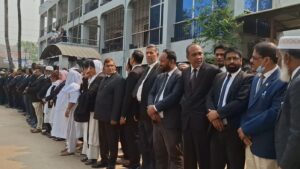 জামালপুরে আইনজীবীদের উপর হামলার প্রতিবাদে মানববন্ধন