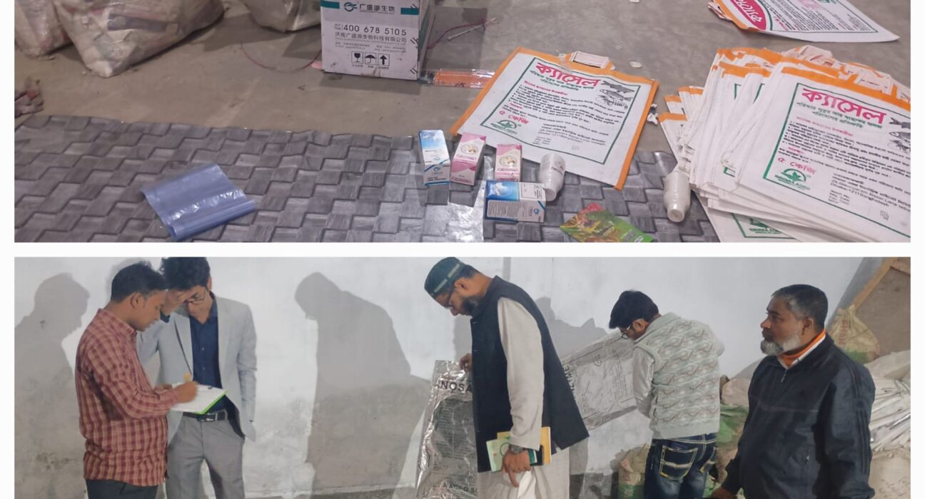 মোস্তাফিজুর নওগাঁ সদর উপজেলার ডাক্তারের মোড় সংলগ্ন সামসুদ্দীনের নর্থ বেঙ্গল গ্রেইন ইন্ডাস্ট্রিজ লি: অটোরাইস মিলের কাছে মেইন রোড সংলগ্ন একটি গোডাউন ঘর ভাড়া নিয়ে বিভিন্ন প্রকার মাছের ওষুধ তৈরি করছিলেন। ছিল না কোনো সাইনবোর্ড, বাইরের গেটে তালা দিয়ে ভিতরে চলছিল এসব অপকর্ম। বাইরে থেকে দেখলে পরিত্যক্ত গোডউন ছাড়া আর কিছু মনে হবে না। গোডাউন ঘরের ভেতর শিশুসহ বেশ কয়েকজন কন্টিনার, বস্তার প্যাকেট থেকে ভিন্ন মেডিসিনের সংমিশ্রন তৈরি করছেন। সেখানে নানান পন্যর মোড়ক ও খালি সাদা বোতল রয়েছে। বড়বড় নীল রঙের কন্টিনার ও বিভিন্ন মেডিসিনের বস্তা থেকে ড্রামে ঢালা হচ্ছে এসব মেডিসিন তারপর মিশ্রন ভালোভাবে গুলিয়ে কাকের সাহায্যে ছোট ছোট বোতলে ঢেলে লেভেল লাগিয়ে তা বাজারে ছাড়া হচ্ছিল। ফলে এসব ভেজাল ওষুধ বাজারজাত করায় গুণগত মান নিয়ে প্রশ্ন উঠছিল আসল গ্ল্যাে•া কোম্পানির বাজারজাত করা ওষুধের। দিন দিন নষ্ট হচ্ছিল তাদের সুনাম। অপরদিকে ক্ষতির সম্মুখীন হচ্ছিলেন বিভিন্ন মৎস্য চাষিরা। বিষয়টি গণমাধ্যমে জানাজানি হলে গ্ল্যাে•া এগ্রোভেটের সংশ্লিষ্ট কর্তৃপক্ষের অভিযোগের প্রেক্ষিতে এদিন ভ্রাম্যমাণ আদালত পরিচালনা করা হয়। এসময় উপস্থিত ছিলেন সদর উপজেলার সিনিয়র মৎস্য কর্মকর্তা ড. মো: বায়েজিদ আলম, গ্যালাে এগ্রোভেটের ব্যবস্থাপনা পরিচালক নাসিম আহমেদ। সহযোগিতা করেন সদর থানার পুলিশ সদস্যরা। এদিকে মোবাইল কোর্টের এই অভিযানে সন্তুষ্টি প্রকাশ করেন গ্ল্যাে এগ্রোভেট কোম্পানির ব্যবস্থাপনা পরিচালক নাসিম আহমেদ। তিনি বলেন, আমরা গোপন খবরে জানতে পারি আমাদের কোম্পানির মোড়ক ব্যবহার করে তারা নকল ওষুধ তৈরি করছিল। জানি না তারা কতোদিন থেকে নকল ওষুধ তৈরির এই কার্যক্রম চালিয়ে আসছিল। তাদের কারণে আমাদের কোম্পানির সুনাম নষ্ট হয়ে যাচ্ছিল। বিভিন্ন জায়গায় থেকে প্রোডাক্টের গুণগত মান নিয়ে অভিযোগ আসছিল। আমরা কোনো সমাধান পাচ্ছিলাম না। আজ মোবাইল কোর্টের মাধ্যমে সেটার সমাধান হলো। ম্যাজিস্ট্রেট ও সহকারী কমিশনার (ভূমি) শেখ নওশাদ হাসান বলেন কারখানায় বিভিন্ন কোম্পানির মোড়ক ব্যবহার করে অবৈধভাবে নকল মৎস্য ওষুধ তৈরি করা হচ্ছিলো। গোপন সংবাদের ভিত্তিতে আমরা এখানে আসি। যার সত্যতা পাওয়া যায়। নকল ওষুধ তৈরির বিভিন্ন উপকরণসহ অনেক মালামাল জব্দ করা হয়েছে। এছাড়া কিছু মালামাল ধ্বংস করা হয়েছে। তবে এর সাথে সম্পৃক্ত কাউকে পাওয়া যায়নি। পরবর্তীতে এর সাথে যারা সম্পৃক্ত আছে তাদের বিরুদ্ধে আইনগত ব্যবস্থা গ্রহণ করা হবে।
