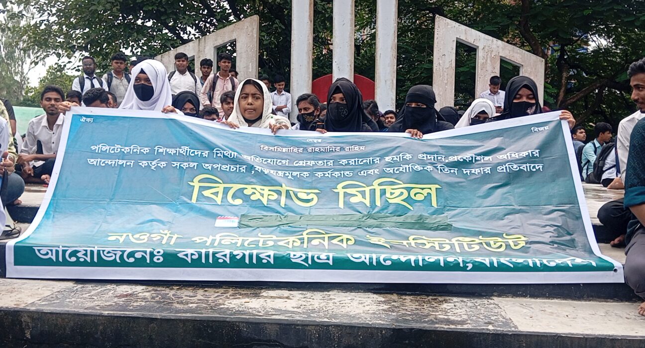 নওগাঁয় পলিটেকনিক শিক্ষার্থীদের বিক্ষোভ ও অবস্থান কর্মসূচি