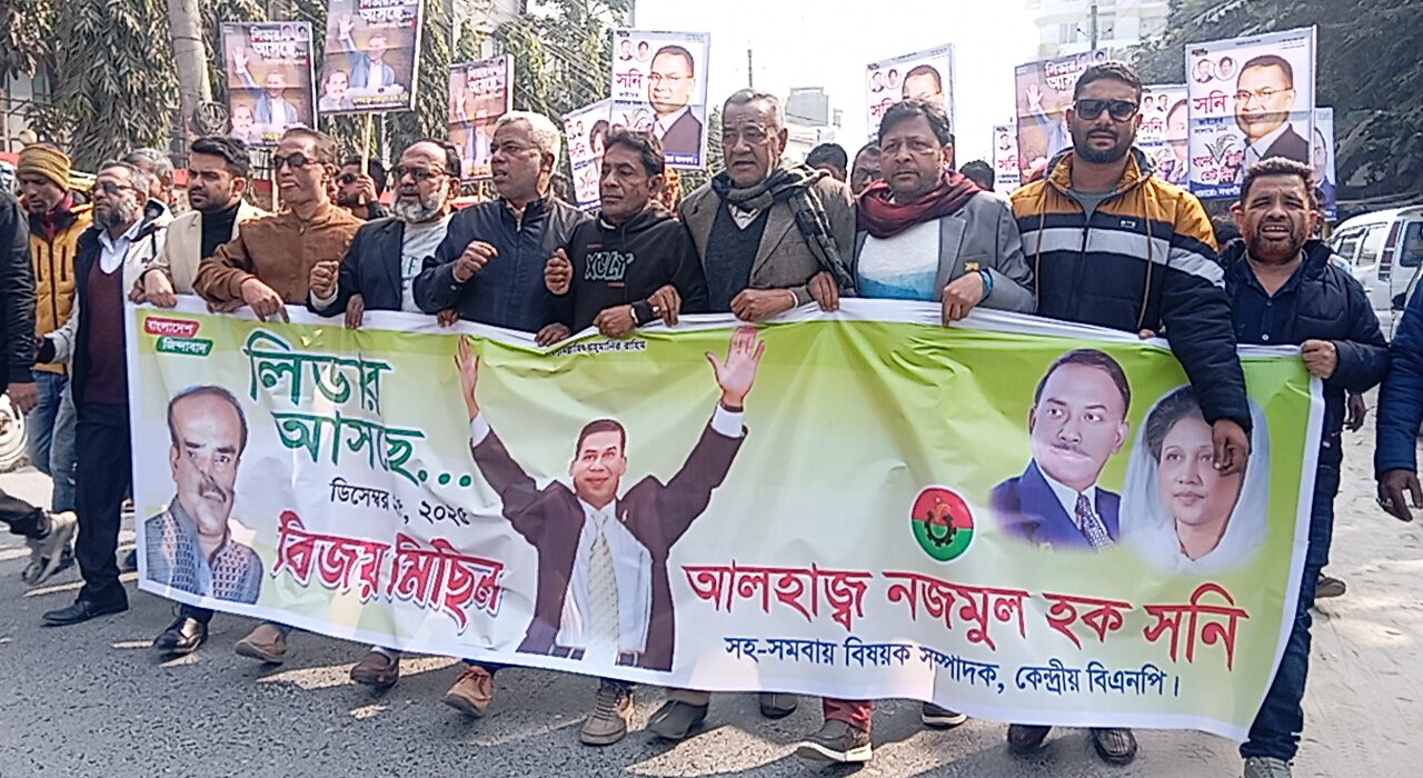 নওগাঁয় বিএনপির ভারপ্রাপ্ত চেয়ারম্যান তারেক রহমানের স্বদেশ প্রত্যাবর্তনকে স্বাগত জানিয়ে মিছিল