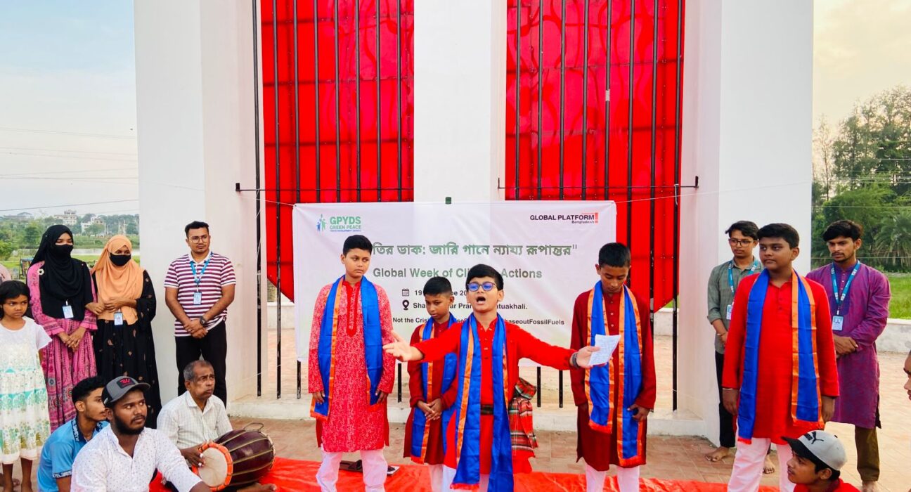 আসাদুল্লাহ হাসান মুসা, পটুয়াখালী প্রতিনিধিঃ- উপকূলীয় জেলা পটুয়াখালীতে গ্লোবাল উইক অব ক্লাইমেট অ্যাকশন উপলক্ষে অনুষ্ঠিত হলো জলবায়ু সংকট মোকাবিলায় ভিন্নধর্মী সাংস্কৃতিক আয়োজন “প্রকৃতির ডাক: জারি গানে ন্যায় রূপান্তর”। শুক্রবার (১৯ সেপ্টেম্বর) বিকেলে শহীদ মিনার প্রাঙ্গণে গ্রীন পিস ইয়ুথ ডেভেলপমেন্ট সোসাইটির আয়োজনে, গ্লোবাল প্ল্যাটফর্ম বাংলাদেশের সহযোগিতায় এবং ধুমকেতু ইয়ুথ ফাউন্ডেশনের বাস্তবায়নে এই কর্মসূচি অনুষ্ঠিত হয়।