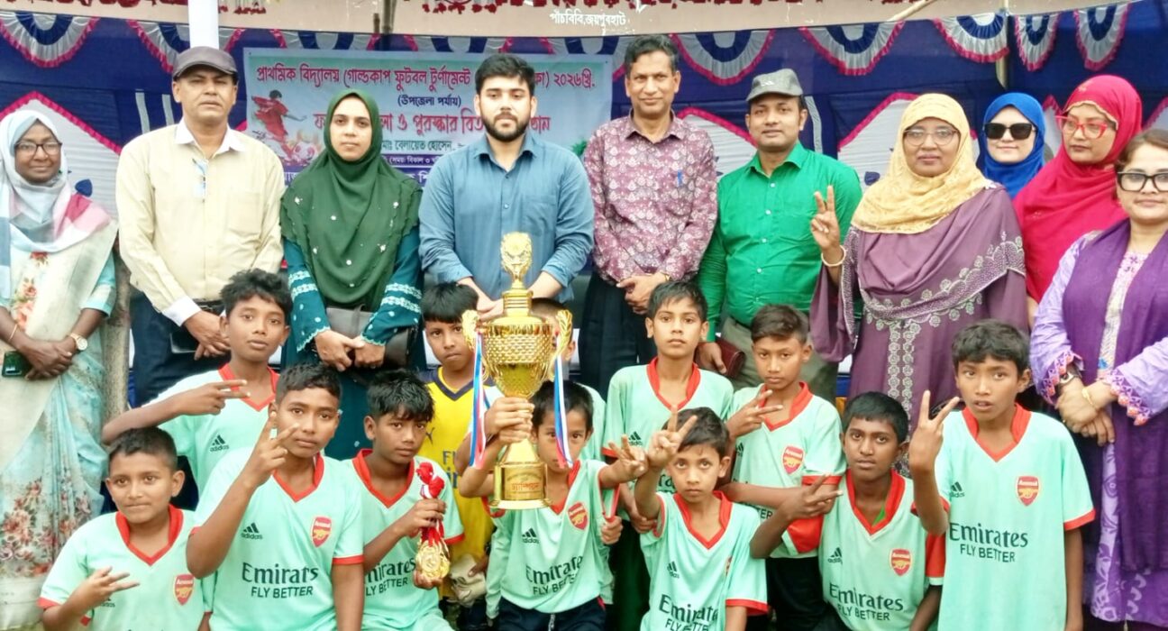 জয়পুরহাটের পাঁচবিবি উপজেলায় প্রাথমিক বিদ্যালয়ের ক্ষুদে শিক্ষার্থীদের অংশগ্রহণে আয়োজিত গোল্ডকাপ ফুটবল টুর্নামেন্ট-২০২৬ এর সমাপনী ও পুরস্কার বিতরণী অনুষ্ঠান উৎসবমুখর পরিবেশে অনুষ্ঠিত হয়েছে।