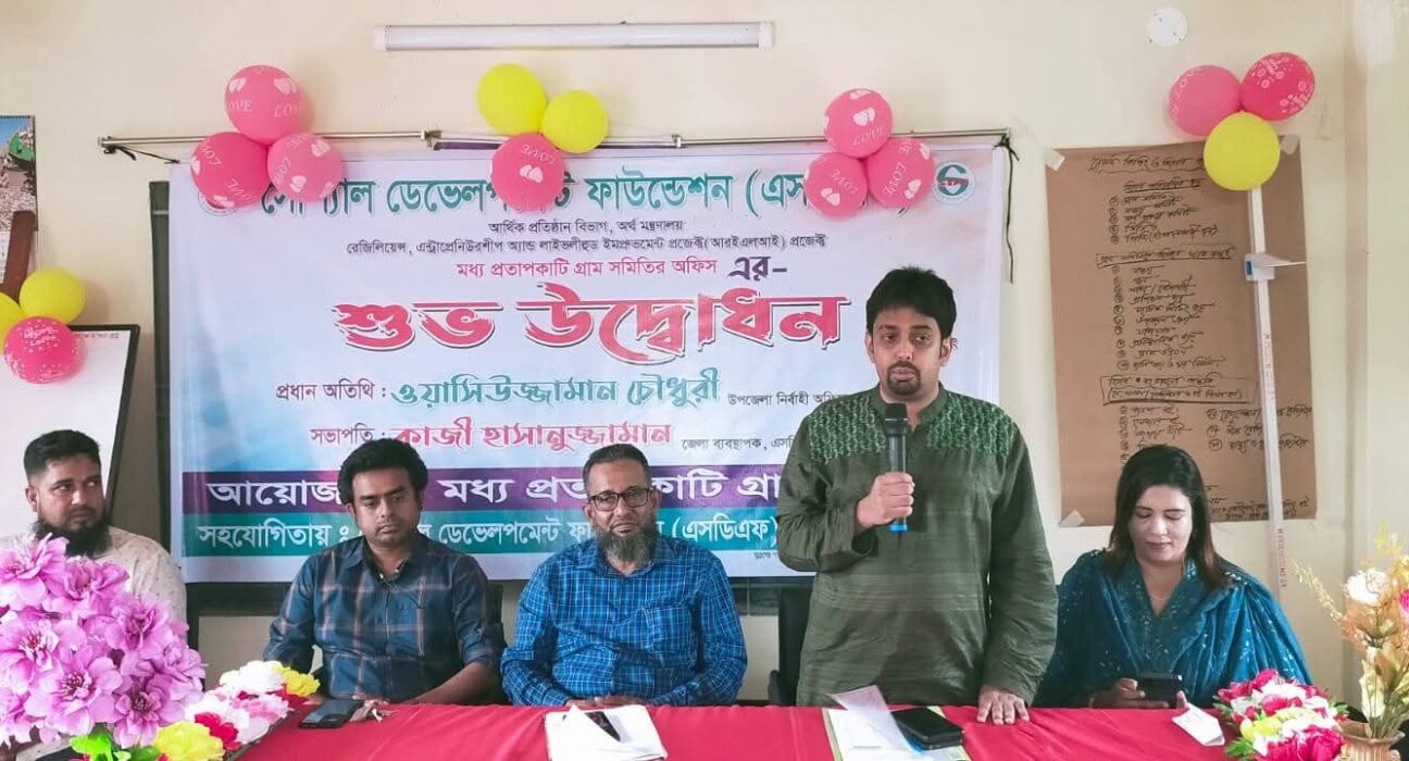 এসডিএফ জেলা ব্যবস্থাপক কাজী হাসানুজ্জামানের সভাপতিত্বে অনুষ্ঠানে জেলা কর্মকর্তা মো. সালাউদ্দিন, উপজেলা প্রকল্প বাস্তবায়ন কর্মকর্তা রাজীব বিশ্বাসসহ বিভিন্ন কর্মকর্তা ও গ্রাম সমিতির নেতৃবৃন্দ উপস্থিত ছিলেন।
