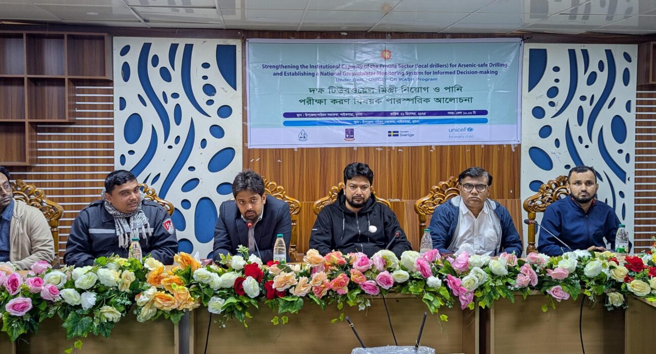 খুলনার পাইকগাছায় আর্সেনিকমুক্ত নিরাপদ পানির নলকূপ স্থাপন নিশ্চিত করতে নলকূপ মিস্ত্রিদের প্রশিক্ষণ কর্মশালা, মিস্ত্রি নিয়োগ ও পানি পরীক্ষাকরণ বিষয়ক পারস্পরিক আলোচনা সভা অনুষ্ঠিত হয়েছে।
