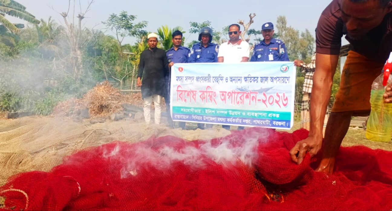 বুধবার (১৮ ফেব্রুয়ারি) সকাল ১০টা থেকে দুপুর ২টা পর্যন্ত কাকচিড়া নৌ-পুলিশ ফাঁড়ির ব্যবস্থাপনায় এবং পাথরঘাটা উপজেলা মৎস্য কর্মকর্তার সহযোগিতায় এ কম্বিং অপারেশন পরিচালিত হয়।