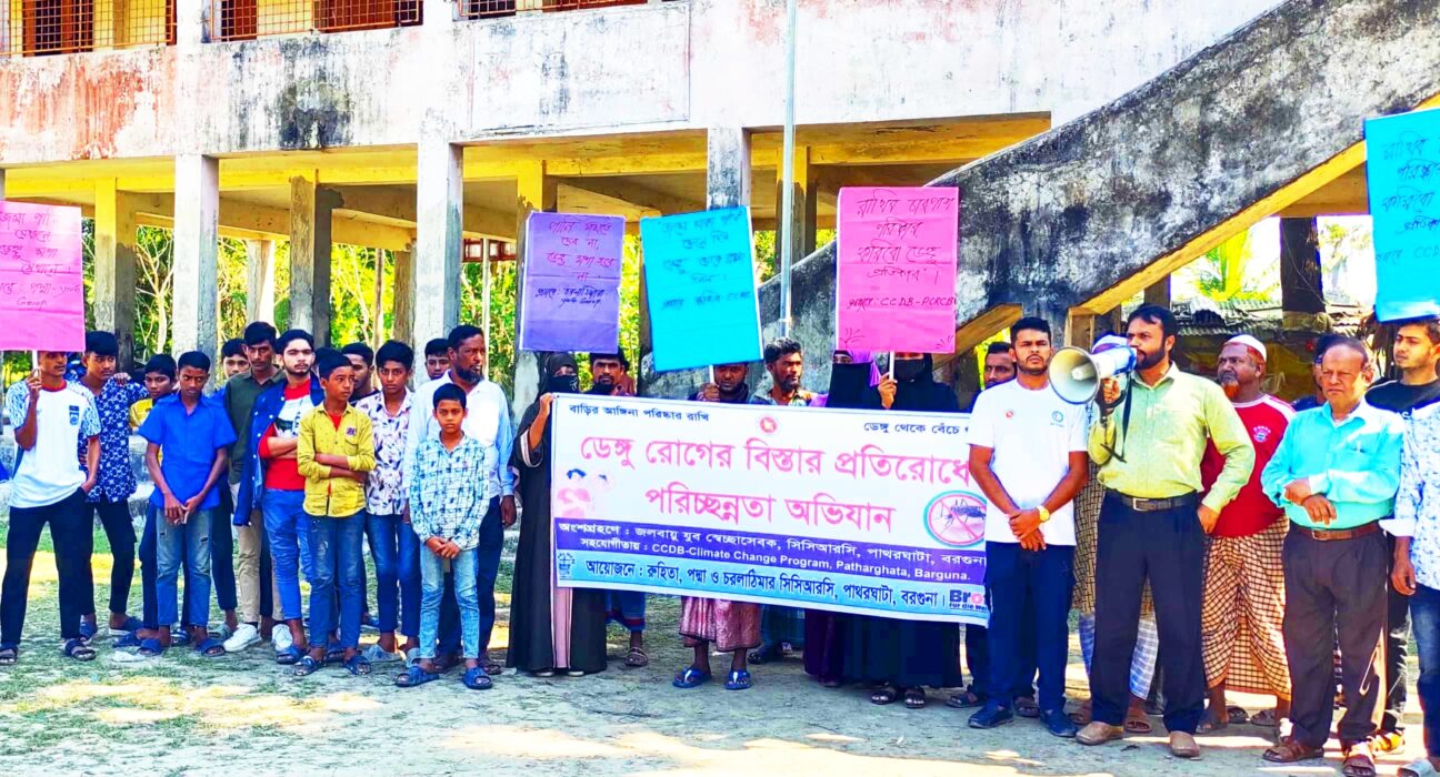 জলবায়ুর বিরূপ প্রভাব মোকাবেলা ও জলবায়ু-সহনশীল জনগোষ্ঠী গড়ে তোলার অংশ হিসেবে বরগুনার পাথরঘাটা উপজেলার সদর ইউনিয়নের রুহিতা মাধ্যমিক বিদ্যালয় এলাকায় ডেঙ্গু প্রতিরোধে পরিচ্ছন্নতা অভিযান ও সচেতনতামূলক র্যালি অনুষ্ঠিত হয়েছে। সোমবার (১৭ নভেম্বর) সকাল ১০টায় রুহিতা, পদ্মা ও চরলাঠিমারা গ্রামের যুব স্বেচ্ছাসেবক দল এবং রুহিতা সিসিআরসির যৌথ উদ্যোগে এ কর্মসূচি অনুষ্ঠিত হয়।