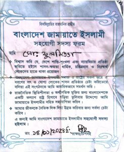 আমি স্পষ্টভাবে জানাতে চাই যে, ১৪/১/২০২৪ইং হতে আমি রৌমারী উপজেলা জামায়াতের একজন সক্রিয় কর্মী৷ এবং বর্তমানে যাদুরচর ইউনিয়নের ৮ নং ওয়ার্ড জামায়াতের সভাপতি৷ তাহার পূর্বে তিন বছর আমি ইসলামী আন্দোলন বাংলাদেশ এর একজন কর্মী ছিলাম৷