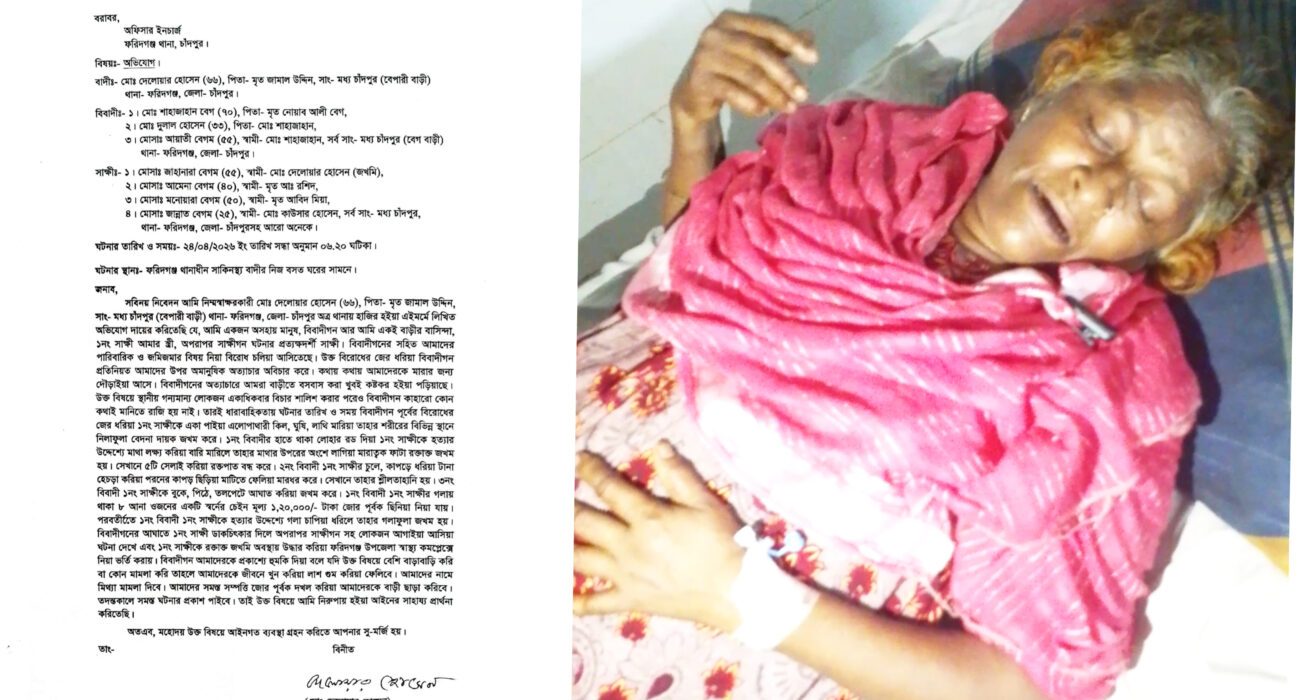 ফরিদগঞ্জে জমি সংক্রান্ত বিরোধের জেরে বৃদ্ধা মহিলার ওপর নৃশংস হামলা, থানায় অভিযোগ