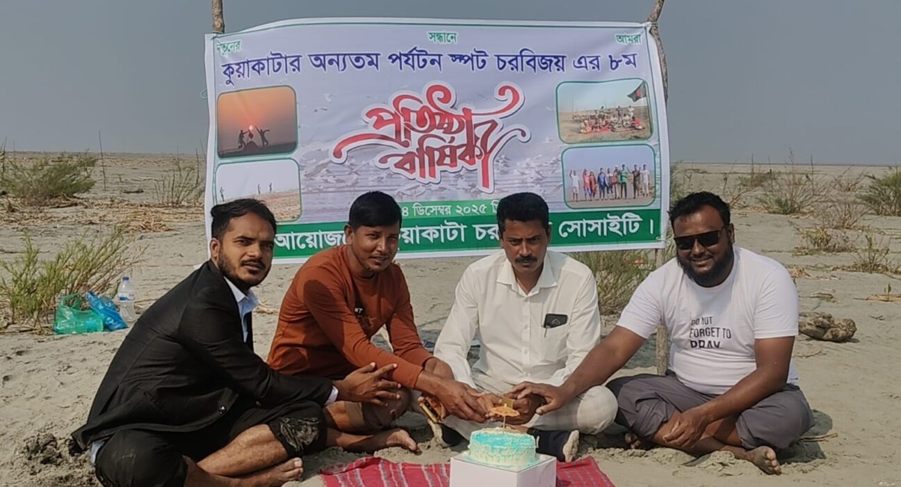 সমুদ্রের মাঝে নবজাগ্রত কুয়াকাটার সম্ভাবনাময় দ্বীপ চর বিজয় আজ বৃহস্পতিবার (৪ ডিসেম্বর) উদযাপন করলো তার ৮ম প্রতিষ্ঠাবার্ষিকী। সকাল থেকেই কুয়াকাটা চর বিজয় সোসাইটির উদ্যোগে দ্বীপজুড়ে ছিল উৎসবমুখর পরিবেশ। স্থানীয় বাসিন্দা, ভ্রমণপিপাসু পর্যটক ও অতিথিদের উপস্থিতিতে প্রাণবন্ত হয়ে ওঠে পুরো চর।