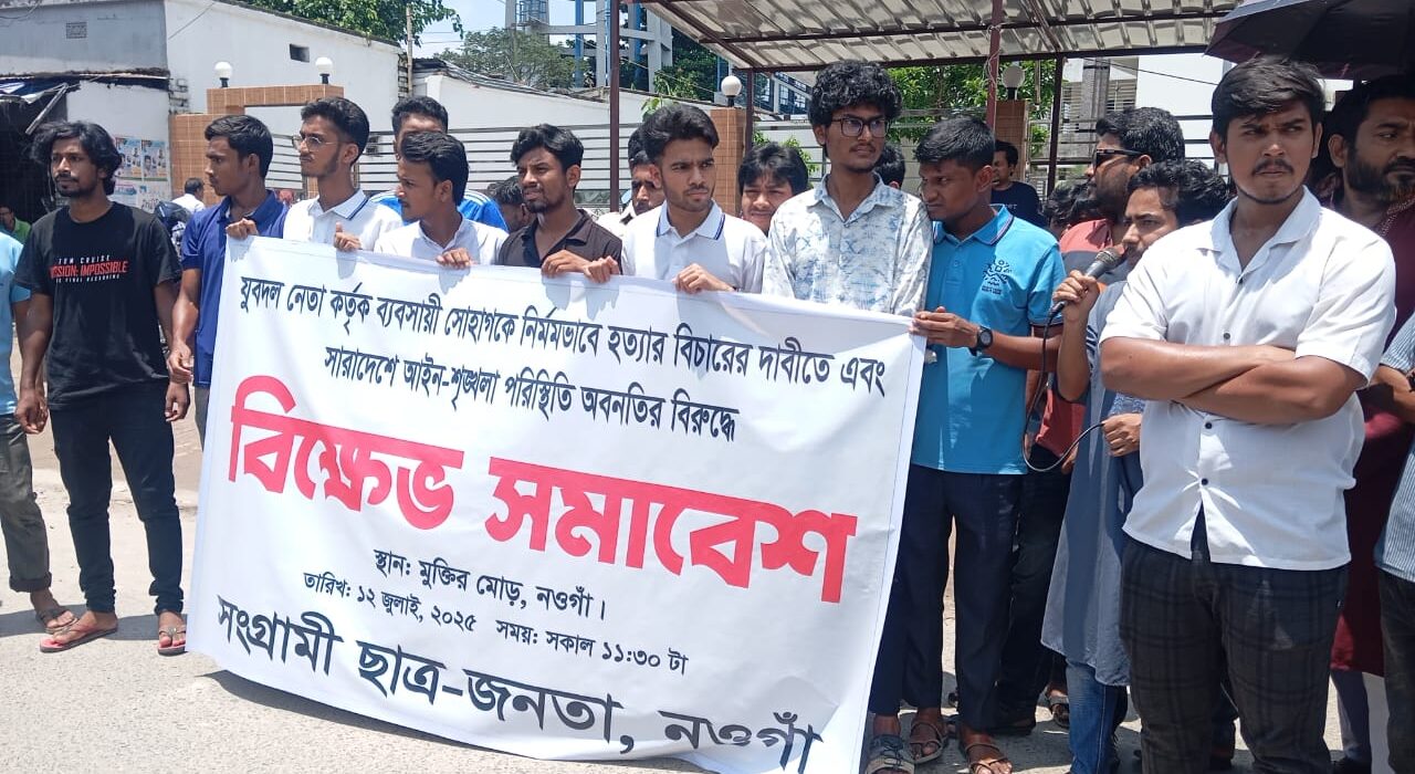 ব্যবসায়ীকে হত্যা ও সারা দেশে অব্যাহত সন্ত্রাসবাদের বিরুদ্ধে নওগাঁয় বিক্ষোভ