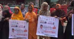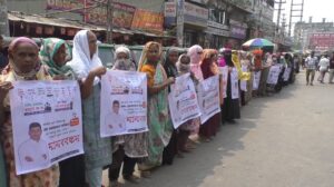 রবিবার (২৬ এপ্রিল) সকাল ১০টায় কেরানীগঞ্জের কদমতলী এলাকায় আয়োজিত এই মানববন্ধনে স্থানীয় ব্যবসায়ী, বিভিন্ন শ্রেণি-পেশার মানুষ এবং ভুক্তভোগীর স্বজনরা অংশ নেন। এতে প্রায় তিন শতাধিক মানুষের উপস্থিতি লক্ষ্য করা যায়।