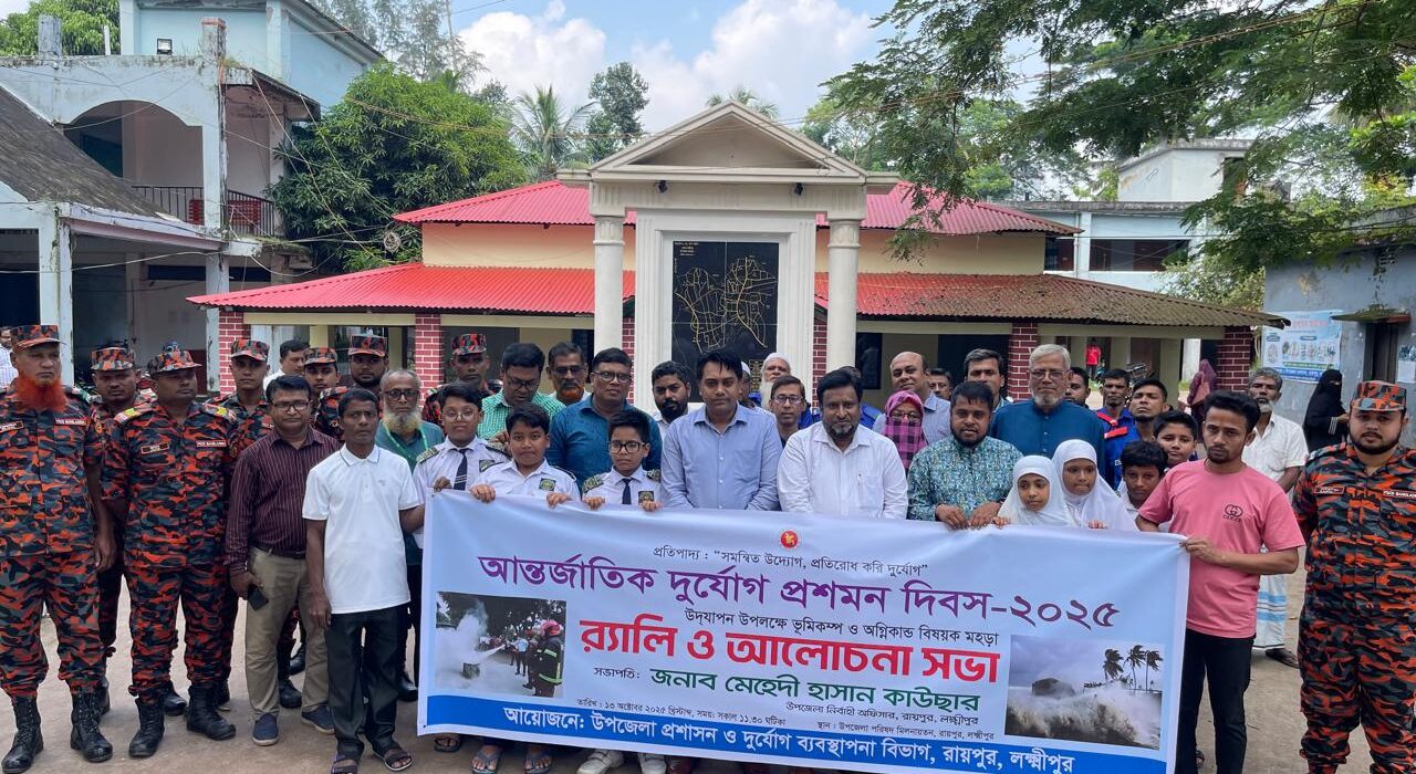 “সমন্বিত উদ্যোগ, প্রতিরোধ করি দুর্যোগ”— এই প্রতিপাদ্যকে সামনে রেখে লক্ষ্মীপুরের রায়পুরে আন্তর্জাতিক দুর্যোগ প্রশমন দিবস-২০২৫ উদযাপিত হয়েছে।
