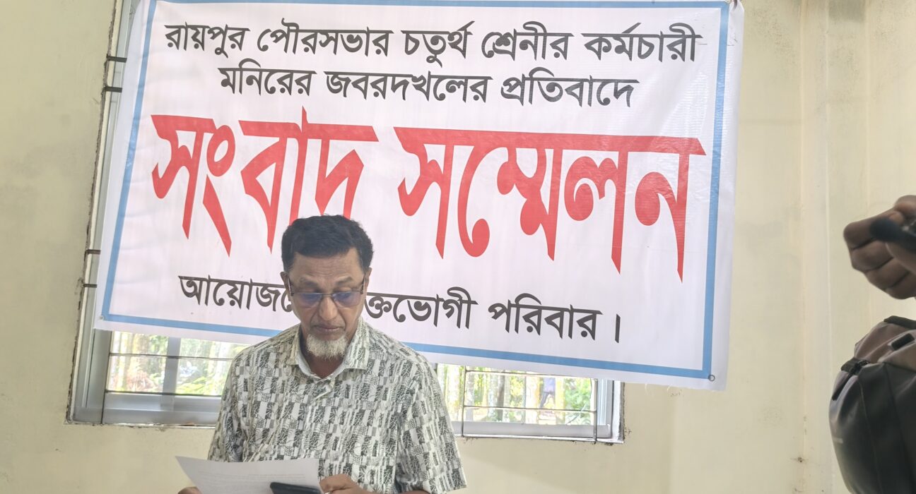 সংবাদ সম্মেলনে ভুক্তভোগী আনোয়ার হোসেন লিখিত অভিযোগ পাঠ করে বলেন, আজ আপনাদের সামনে উপস্থিত হয়েছি এক গুরুতর অভিযোগ জানাতে। আমি খন্দকার মোঃ আনোয়ার হোসেন, পিতা: মৃত খন্দকার মোঃ ইউনুস মিয়া, বাসিন্দা খন্দকার বাড়ি, ৮নং ওয়ার্ড, রায়পুর পৌরসভা।