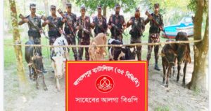 সাহেবের আলগা বিওপি’র টহল দল কর্তৃক সীমান্ত পিলার ১০৫১/এমপি হতে আনুমানিক ৩০০ গজ বাংলাদেশের অভ্যন্তরে ডিগ্রীরচর নামক স্থান হতে সকাল ৭ টার দিকে ভারতীয় গরু-০৬টি আটক করতে সক্ষম হয়। উভয় জব্দকৃত চোরাচালানী মালামাল রৌমারী কাস্টমসে জমা করার কার্যক্রম চলমান।