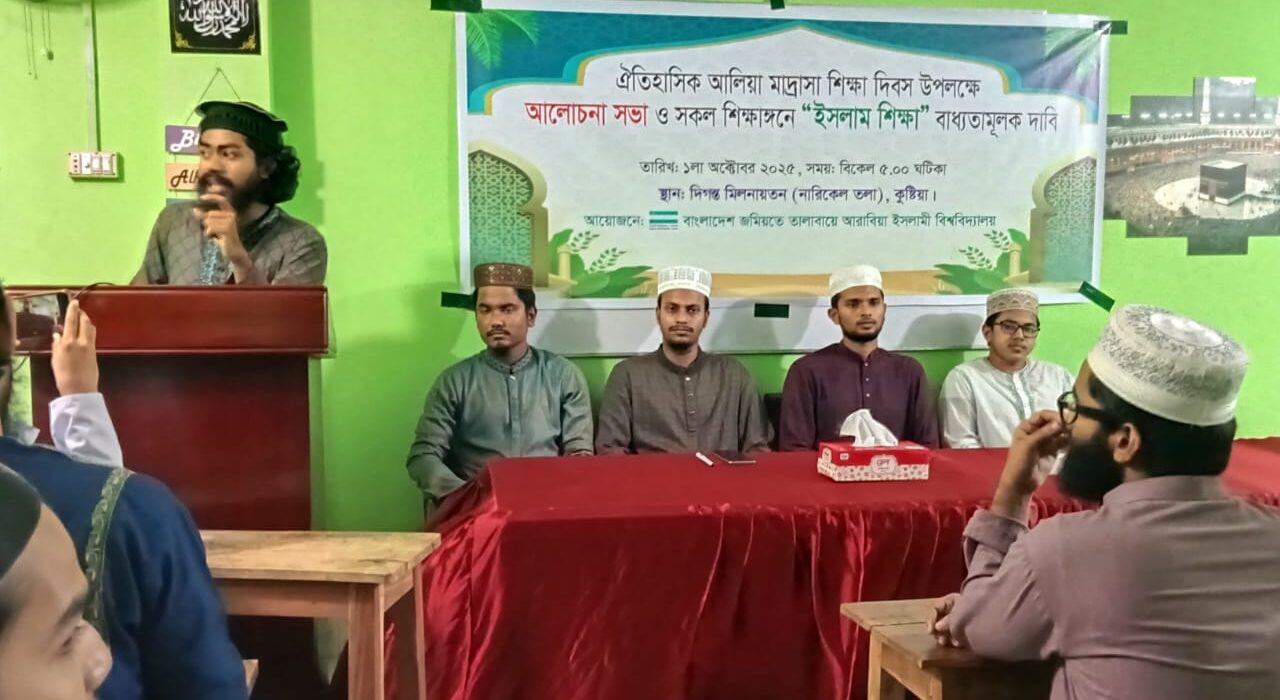 আলিয়া মাদ্রাসা শিক্ষা দিবস উপলক্ষে বাংলাদেশ জমিয়তে তালাবায়ে আরাবিয়া ইসলামী বিশ্ববিদ্যালয় শাখা কর্তৃক সকল শিক্ষাঙ্গনে ইসলাম শিক্ষা বাধ্যতামূলক করার দাবিতে আলোচনা সভা অনুষ্ঠিত হয়েছে।