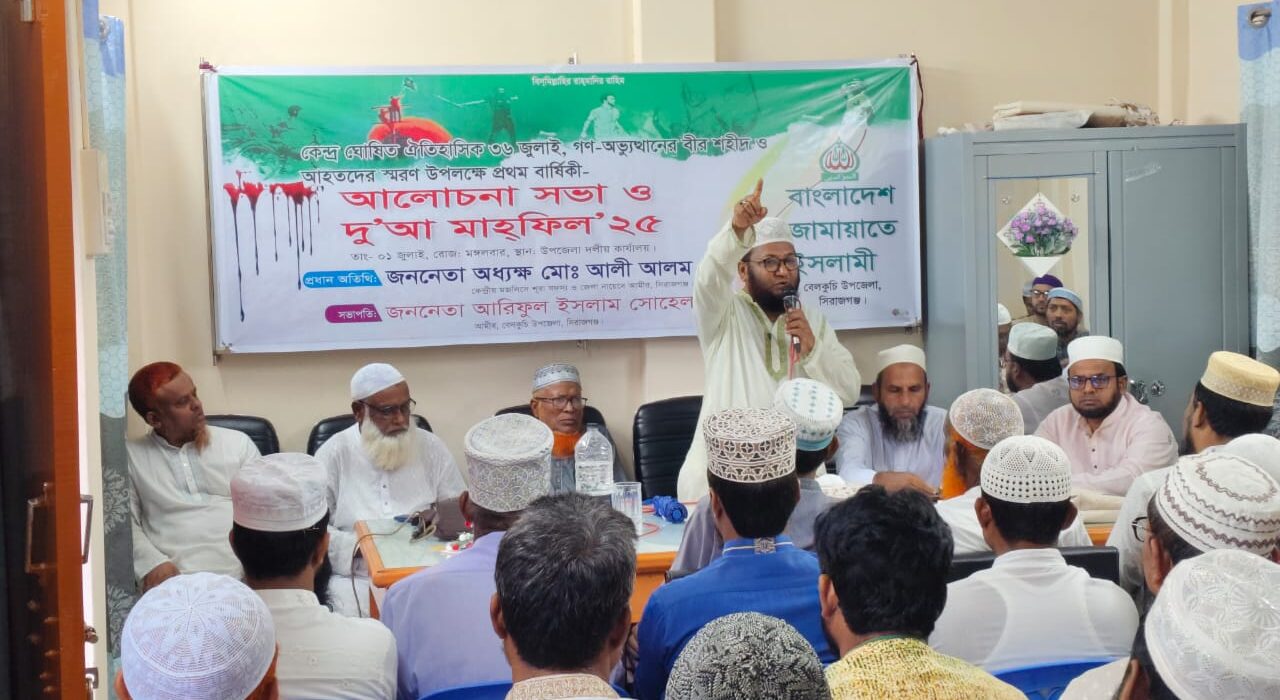 ৩৬ জুলাই গণঅভ্যুত্থান স্মরণে বেলকুচিতে জামায়াতে ইসলামীর আলোচনা সভা ও দোয়া মাহফিল অনুষ্ঠিত