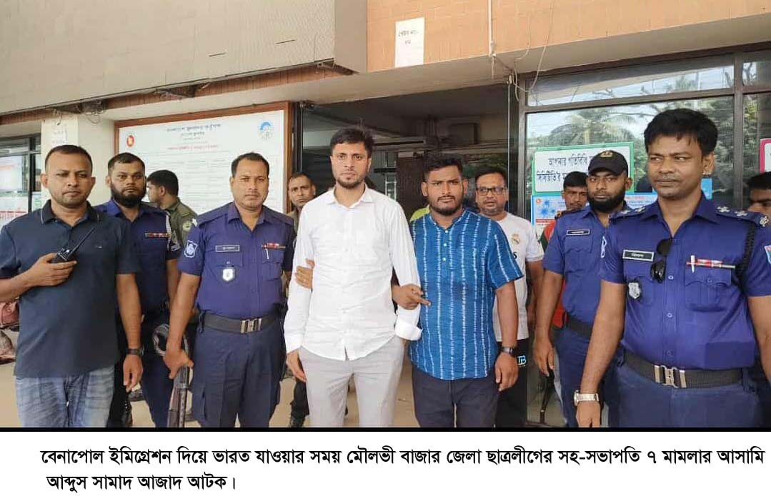 মৌলভী বাজার জেলা ছাত্রলীগের সহ-সভাপতি ৭ মামলার আসামি আব্দুস সামাদ আজাদ ভারত যাওয়ার সময় বেনাপোল ইমিগ্রেশনে আটক হয়েছে।