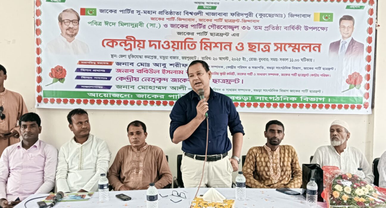 জাকের পার্টি ছাত্রফ্রন্টের বগুড়া সাংগঠনিক বিভাগের আয়োজনে বুধবার (২০ আগস্ট) বিকেলে জয়পুরহাট মুক্তিযোদ্ধা কমপ্লেক্স ভবনে এ সম্মেলন অনুষ্ঠিত হয়।
