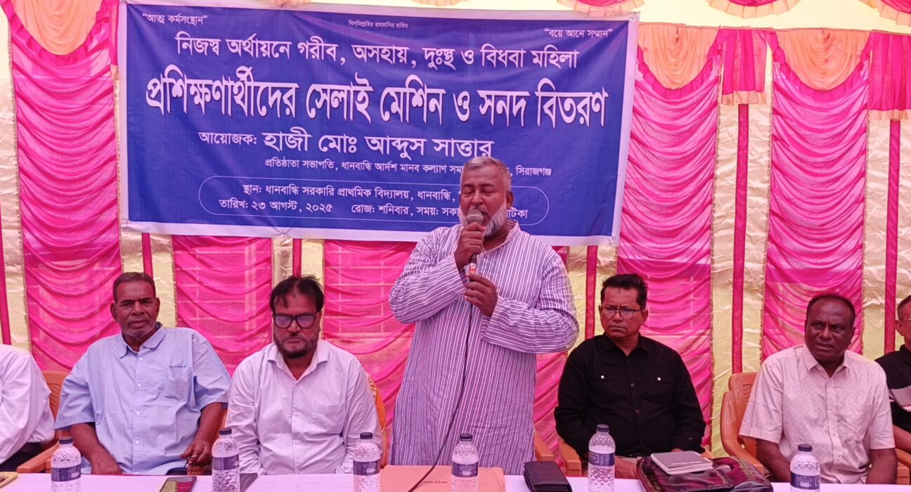 সিরাজগঞ্জে অসহায় নারীদের হাতে সেলাই মেশিন তুলে দিলেন হাজী আব্দুস সাত্তার