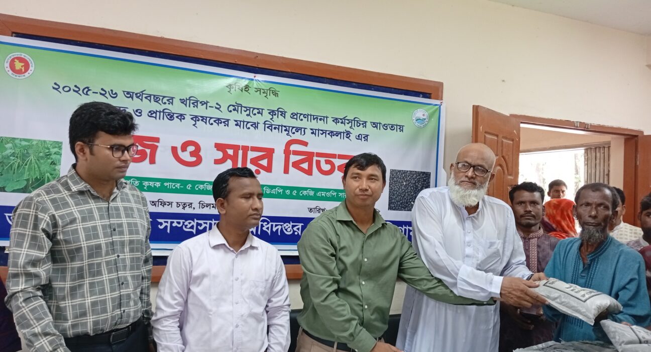 চিলমারীতে ক্ষুদ্র ও প্রান্তিক কৃষকের মাঝে বিনামূল্যে মাসকালাই বীজ ও সার বিতরণ