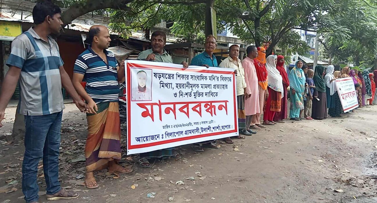 শার্শায় সাংবাদিকের বিরুদ্ধে মিথ্যা মামলা প্রত্যাহার ও মুক্তির দাবিতে মানববন্ধন