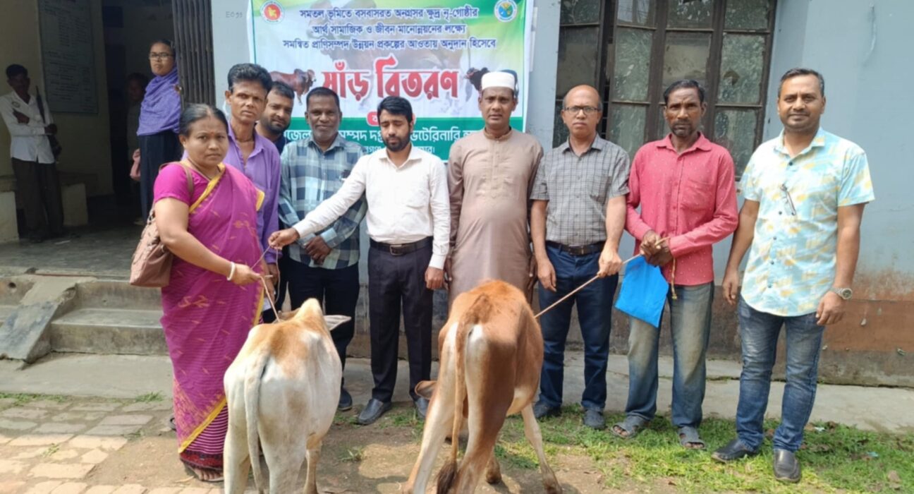 মৌলভীবাজারের কমলগঞ্জে সমতল ভূমিতে বসবাসরত অনগ্রসর ক্ষুদ্র নৃ-গোষ্ঠীর আর্থ-সামাজিক ও জীবন মানোন্নয়নের লক্ষ্যে সমন্বিত প্রাণীসম্পদ উন্নয়ন প্রকল্পের আওতায় সুফল ভোগীদের মাঝে ষাড় গরু বিতরণ করা হয়েছে।