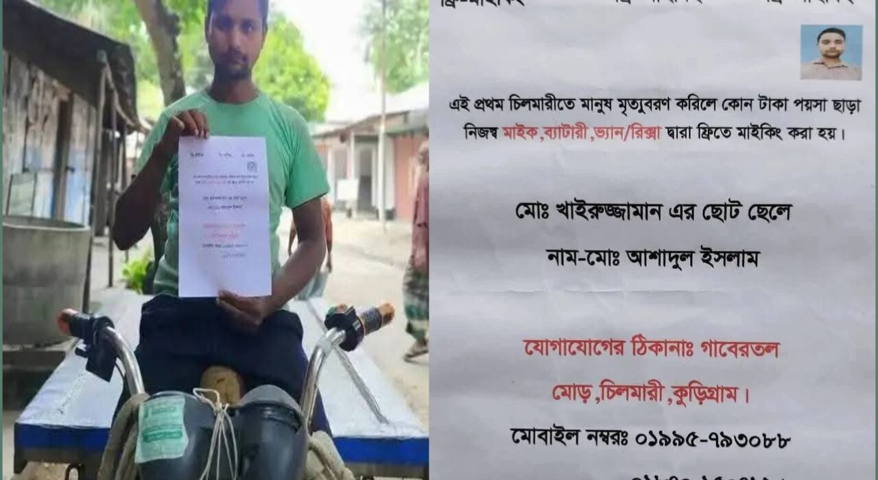 চিলমারীতে “মৃত্যু ব্যক্তির সংবাদ প্রচারের জন্য ফ্রি মাইকিং” এর উদ্যোগ