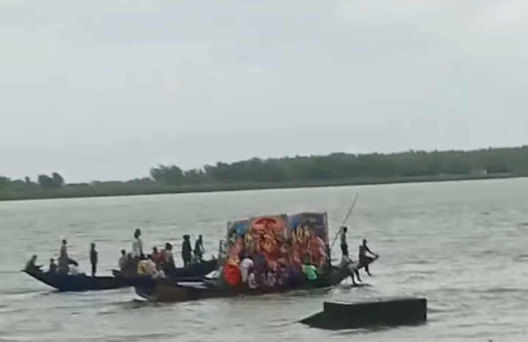 শ্যামনগরে প্রতিমা বিসর্জনের মধ্য দিয়ে শারদীয়া দুর্গোৎসবের সমাপ্তি