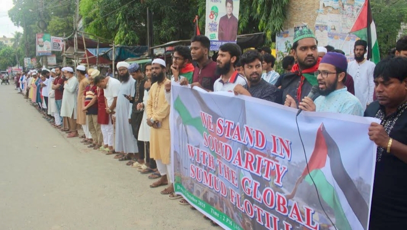 বক্তারা বলেন, অবরুদ্ধ গাজার মানুষের জন্য বিশ্ব মানবাধিকারকর্মীদের পাঠানো ‘গ্লোবাল সুমুদ ফ্লোটিলা’ বহরে ইসরাইল ‘জলদস্যুর’ মতো হামলা চালিয়ে আন্তর্জাতিক মানবাধিকারের মারাত্মক লঙ্ঘন করেছে।