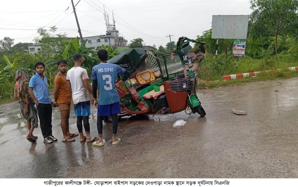 ছবির ক্যাপশন ঃ গাজীপুরের কালীগঞ্জে টঙ্গী- ঘোড়াশাল বাইপাস সড়কের দেওপাড়া নামক স্থানে সড়ক দূর্ঘটনায় সিএনজি।