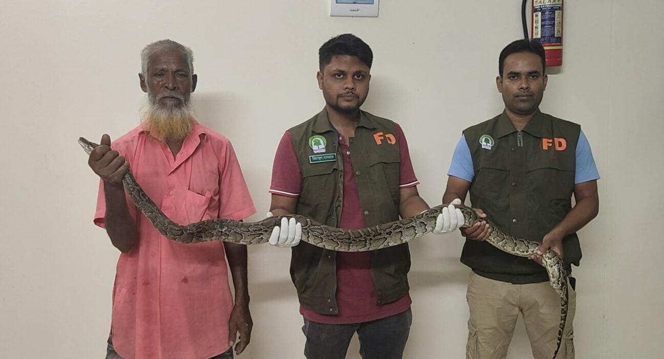 দেবীগঞ্জে অজগর সাপ উদ্ধার, পাঠানো হলো সিংড়া জাতীয় উদ্যানে