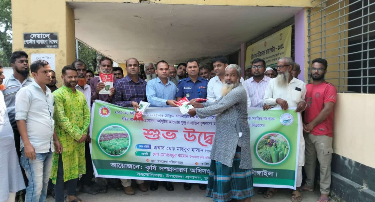 এসময় ২৭০ জন কৃষককে প্রতি ২০ শতাংশ জমির জন্য মাঠে চাষ যোগ্য লাউ, মিষ্টি কুমড়া, বেগুন, শশার বীজ ও প্যাকেট (বেগুন, পালংশাক, লালশাক, মুলা, বাটি শাক, লাউ) এবং ১০ কেজি ডিএপি সার, ১০ কেজি এমওপি সার প্রদান করা হয়।