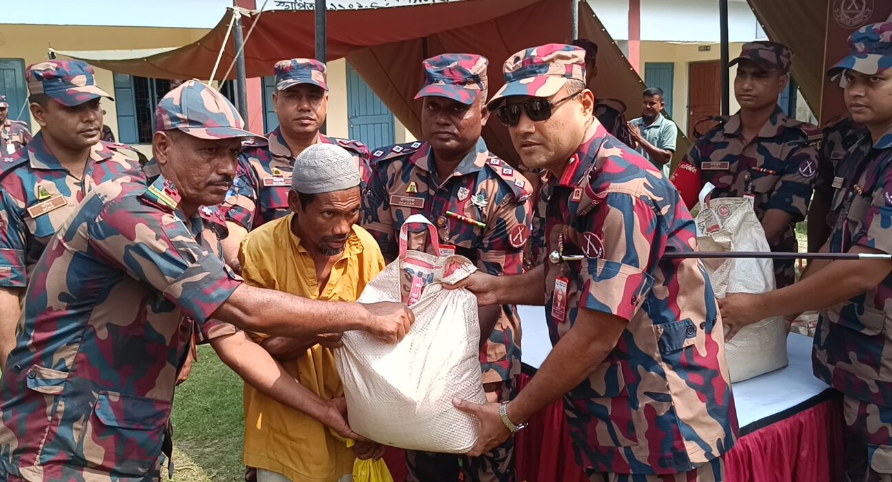 লালমনিরহাটের হাতীবান্ধায় বন্যার্তদের মাঝে ত্রান সামগ্রী বিতরণ ও বিনামূল্যে চিকিৎসা সেবা প্রদান করেছেন তিস্তা ব্যাটালিয়ন ৬১বিজিবি।