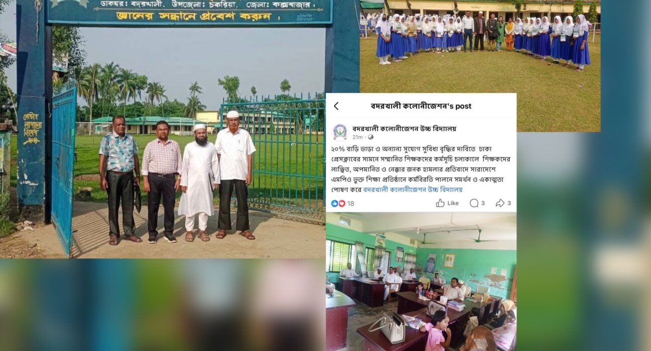 ২০% বাড়ি ভাড়া ও অন্যান্য সুযোগ-সুবিধা বৃদ্ধির দাবিতে ঢাকা প্রেসক্লাবের সামনে সম্মানিত শিক্ষকদের শান্তিপূর্ণ কর্মসূচি চলাকালে শিক্ষক সমাজের ওপর লাঞ্ছনা, অপমান ও ন্যাক্কারজনক হামলার ঘটনায় তীব্র নিন্দা ও প্রতিবাদ জানিয়েছে কক্সবাজারের বদরখালী কলোনীজেশন উচ্চ বিদ্যালয়।