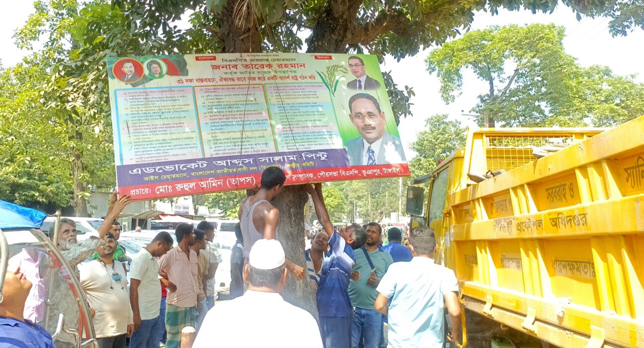 ভূঞাপুরে ব্যানার-পোস্টার অপসারণে উচ্ছেদ অভিযান