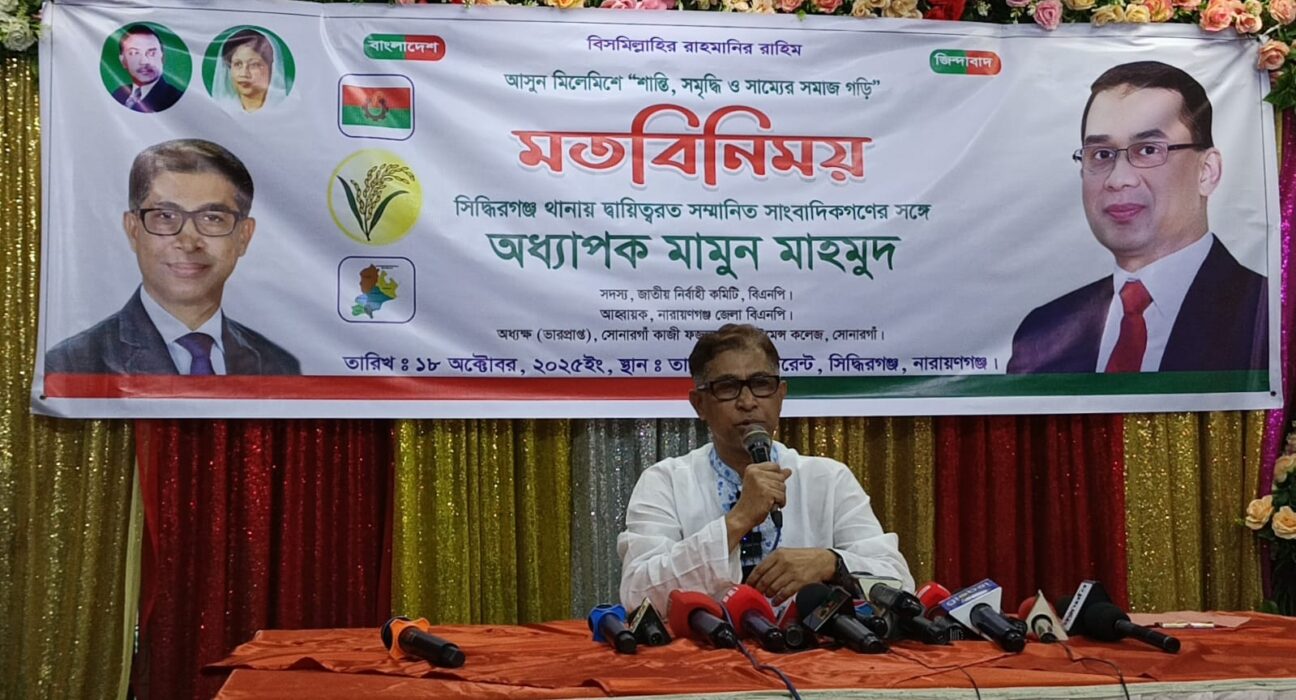 ফ্যাসিট সরকার দীর্ঘ ১৭ বছর মানুষের ভোটের অধিকার হরন করছে।মানুষ ভোট দিতে পারে নাই। আগামী ফেব্রুয়ারিতে মুক্তমনা ভাবে ভোট দিতে পারে সেদিকে লক্ষ্য রাখতে বিএনপি নেতাকর্মীকে অতন্দ্র প্রহরী হিসেবে কাজ করবে।আমাদের মধ্যে কোন কোন্দল থাকবে না ধানের শীষ প্রতীক একটাই সবাই সম্মিলিত ভাবে কাজ করব।এসময় সিদ্ধিরগঞ্জের ইলেকট্রনিক মিডিয়া, প্রিন্ট মিডিয়ার সাংবাদিকবৃন্দ উপস্থিত ছিলেন।