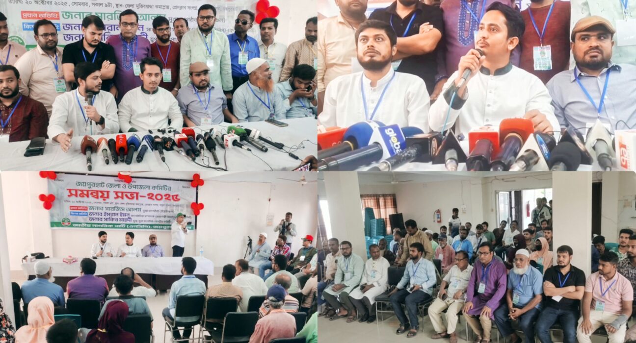 সোমবার (২০ অক্টোবর) দুপুরে জয়পুরহাট শহরের মুক্তিযোদ্ধা কমপ্লেক্স সম্মেলন কক্ষে জাতীয় নাগরিক পার্টির (এনসিপি) জেলা ও উপজেলা কমিটির সমন্বয় সভা শেষে সাংবাদিকদের তিনি এসব কথা বলেন।