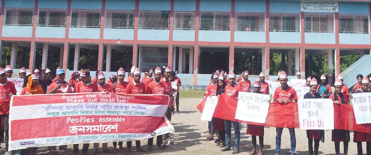 রনজিৎ বর্মন শ্যামনগর(সাতক্ষীরা)প্রতিনিধি ঃ জীবাশ্ম জ্বালানিনির্ভর খাদ্যব্যবস্থা থেকে বেরিয়ে এসে সবুজ জ্বালানি ও প্রকৃতিনির্ভর টেকসই কৃষি গড়ে তোলার আহ্বানে সাতক্ষীরার শ্যামনগরে অনুষ্ঠিত হয়েছে জীবাশ্ম জ্বালানি নির্ভর খাদ্য ব্যবস্থা পাল্টাও, সবুজ জ্বালানি নির্ভর খাদ্য ব্যবস্থা গড়ে তোল” শীর্ষক জনসমাবেশ।