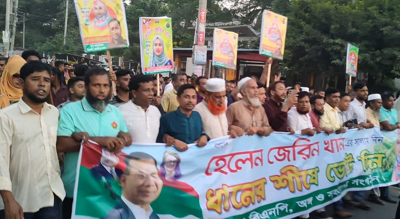সমাবেশ শেষে হেলেন জেরিন খান বিএনপি নেতাকর্মীদের নিয়ে একটি র্যালি বের করেন। র্যালিটি শহরের প্রধান প্রধান সড়ক প্রদক্ষিণ করে ইটেরপুল এ. আর. হাওলাদার ঝুটমিলের সামনে গিয়ে শেষ হয়। সেখানে সংক্ষিপ্ত সমাবেশও অনুষ্ঠিত হয়। এসময় নেতাকর্মীরা হাতে ধানের শীষের প্রতীক ও ব্যানার, ফেস্টুন