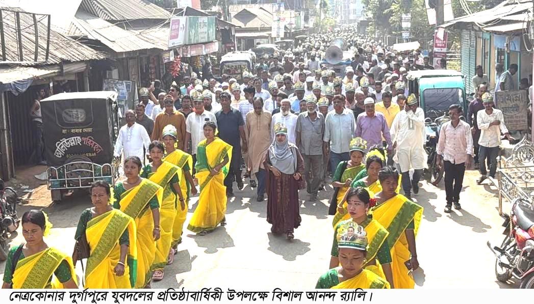 নেত্রকোনার দুর্গাপুরে যুবদলের প্রতিষ্ঠাবার্ষিকীতে আনন্দ র্যালি