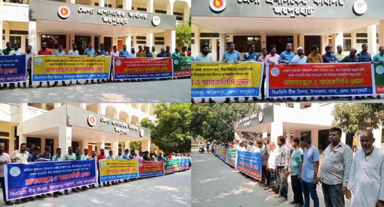 জয়পুরহাটে বিএডিসি বীজ ডিলারদের সার ডিলার হিসেবে নিবন্ধনের দাবিতে মানববন্ধন